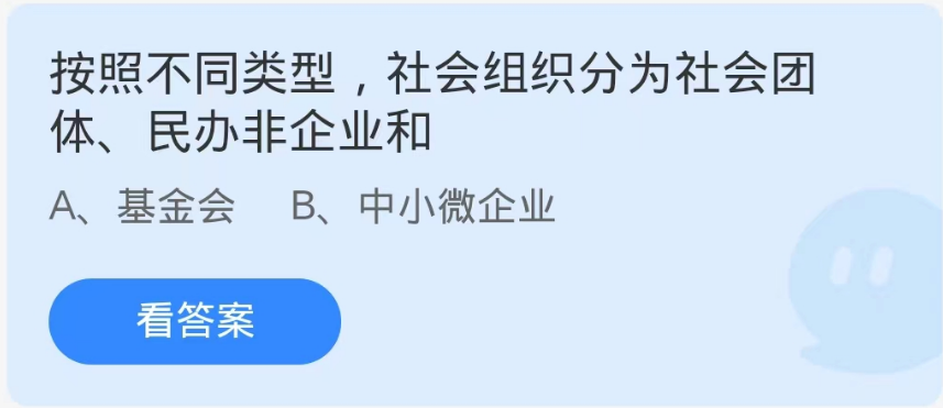 蚂蚁庄园10月15日问题:按照不同类型,社会组织分为社会团体、民办非企业和?很多小伙伴不知道按照不同类型社会组织分为社会团体、民办非企业和什么,那么下面小编就为大家带来了蚂蚁庄园10月15日每日一题答