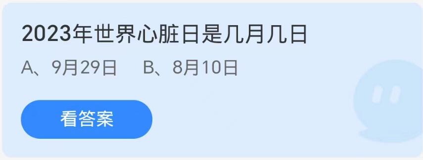 蚂蚁庄园9月29日问题:2023年世界心脏日是几月几日?很多小伙伴不知道2023年世界心脏日是几月几日,那么下面小编就为大家带来了蚂蚁庄园9月29日每日一题答案,感兴趣的快来了解一下吧。蚂蚁庄园今日答