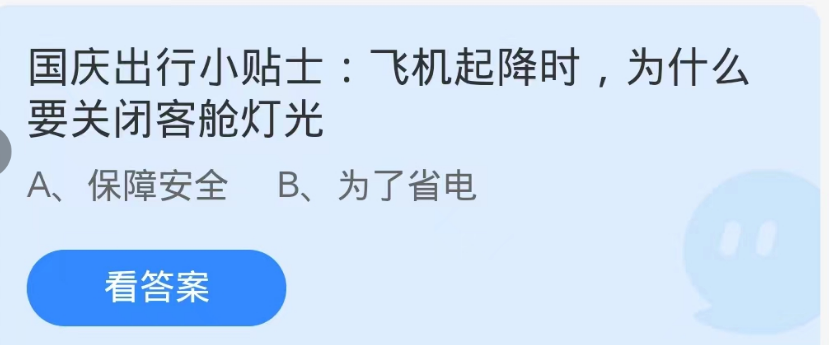 蚂蚁庄园9月30日问题:飞机起降时,为什么要关闭客舱灯光?很多小伙伴不知道飞机在起降时刻为什么要关闭客舱的灯光,那么下面小编就为大家带来了蚂蚁庄园9月30日每日一题答案,感兴趣的快来了解一下吧。蚂蚁庄