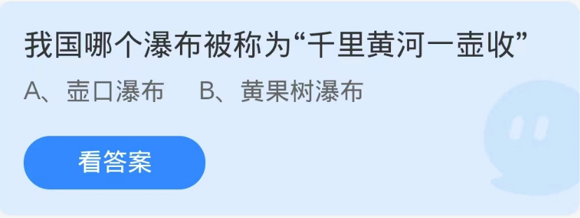蚂蚁庄园9月30日问题:我国哪个瀑布被称为“千里黄河一壶收”?很多小伙伴不知道我国的哪一个瀑布被称之为千里黄河一壶收,那么下面小编就为大家带来了蚂蚁庄园9月30日每日一题答案,感兴趣的快来了解一下吧。