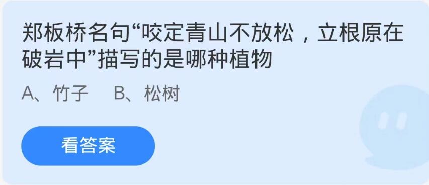 蚂蚁庄园9月22日问题:郑板桥名句“咬定青山不放松,立根原在破岩中"描写的是哪种植物?很多小伙伴不知道咬定青山不放松,立根原在破岩中这个名句中的立根原是破岩中的哪种植物,那么下面小编就为大家带来了蚂蚁