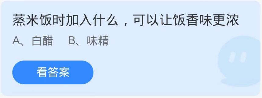 蚂蚁庄园9月22日问题:蒸米饭时加入什么,可以让饭香味更浓?很多小伙伴不知道蒸米饭时候加入一些什么可以让饭香味更浓,那么下面小编就为大家带来了蚂蚁庄园9月22日每日一题答案,感兴趣的快来了解一下吧。蚂
